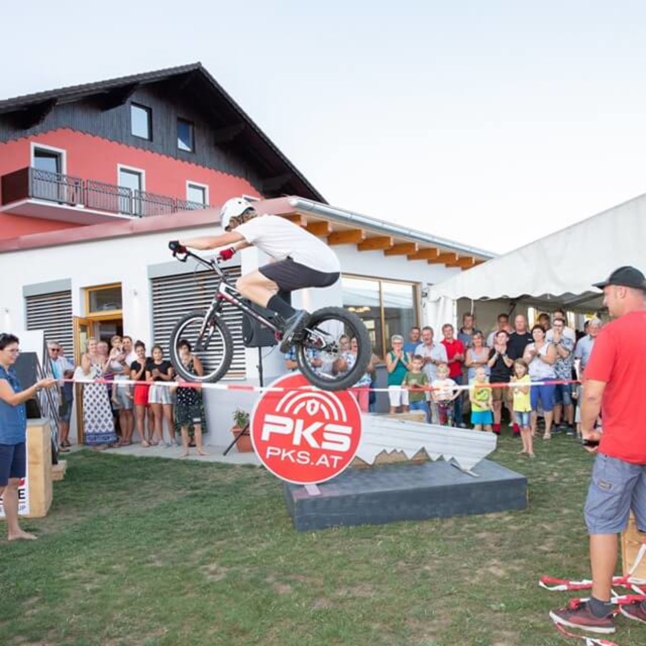 Show bei der 15 Jahr Jubiläumsfeier vom Buschenschank zum Riegersburgblick in der Steiermark. Das Highlight war der Highjump Contest, wo der Nachwuchsfreerunner Kevin eine Höhe von 135cm erreichte. Eine Sensationelle Leistung, die meine Bestleistung mit 130cm in den Schatten stellt.